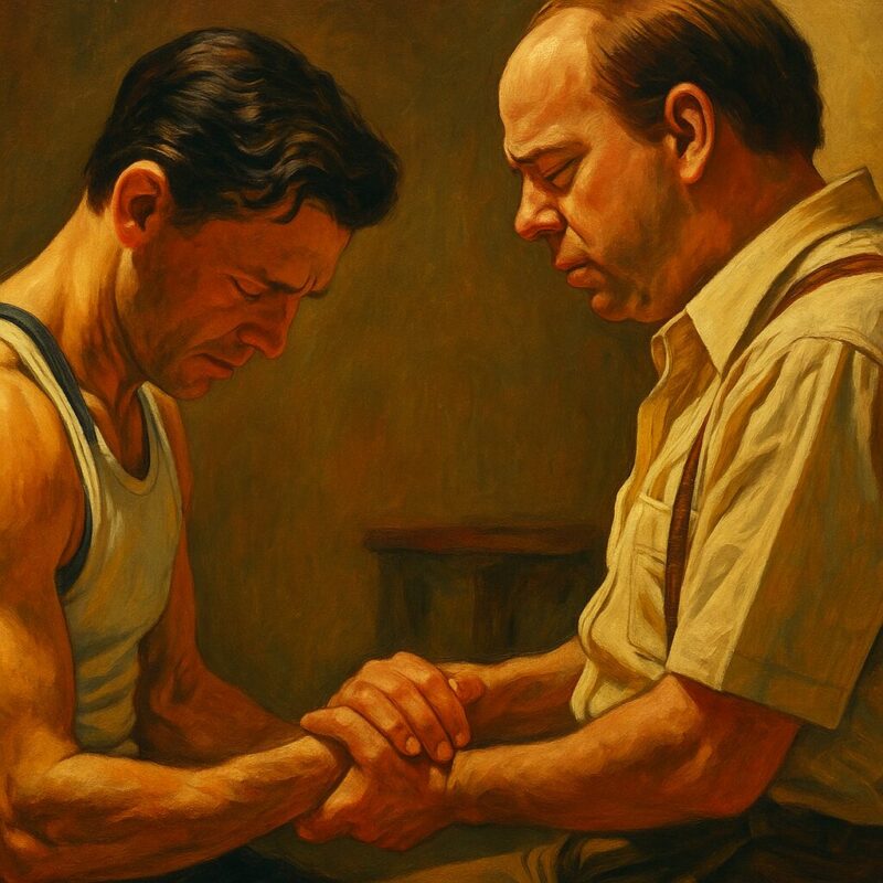 怪我と不況で引退し、港湾労働で家族を養う日々を送っていた。